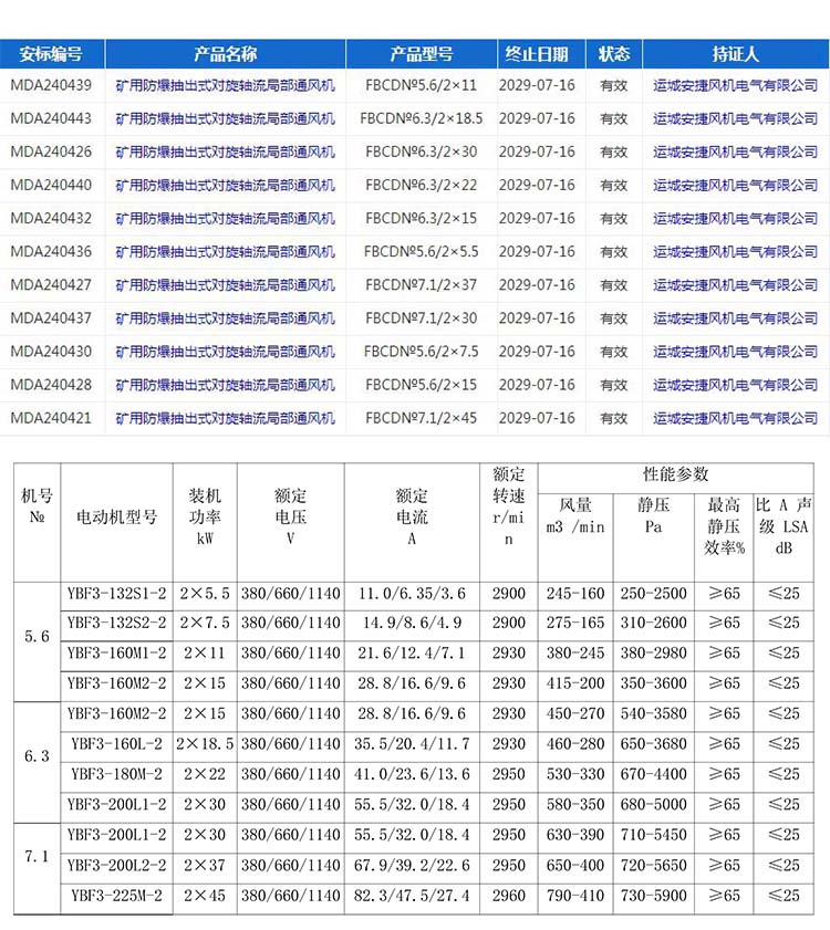 安捷煤矿用防爆抽出式对旋轴流风机FBCD№5.6/2×15 局部通风机带MA 类型 | 抽出式风机 | ||