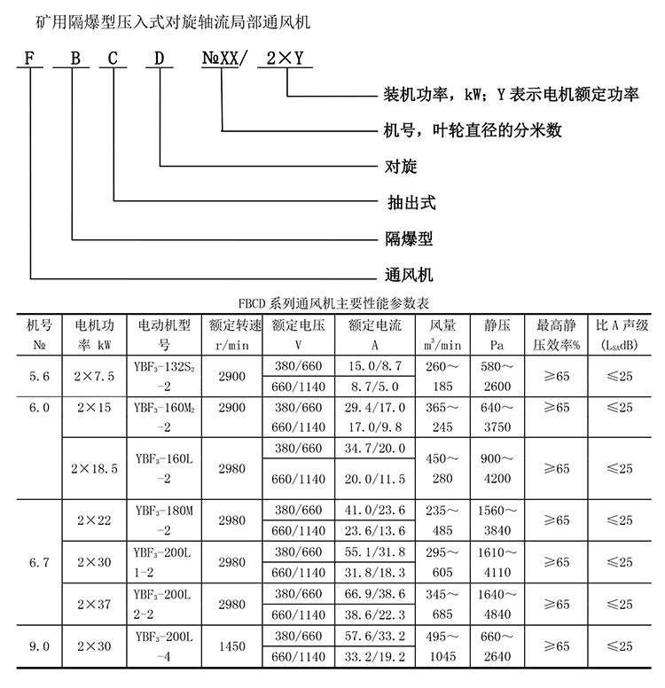 安捷矿用防爆抽出式对旋轴流局部通风机FBCD№5.6/2×11 带MA安标证 用途范围 | 出风口 | ||