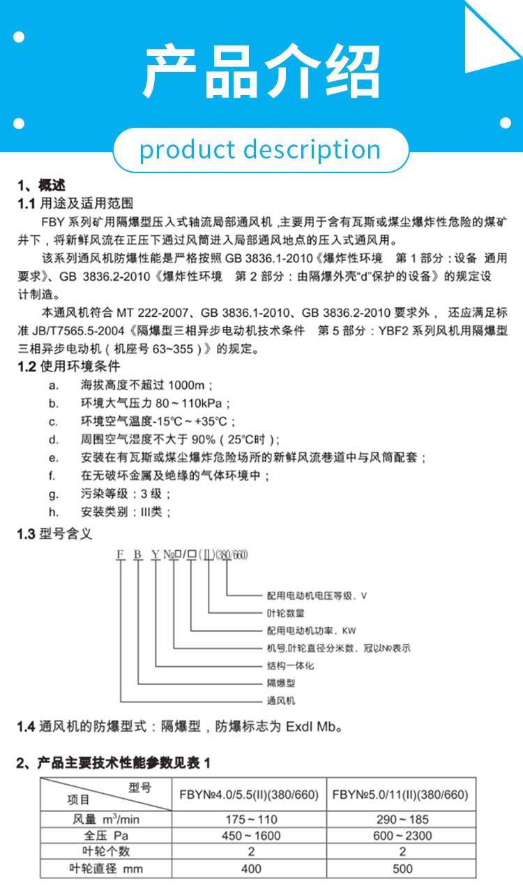安捷矿用隔爆型压入式轴流局部通风机FB№7.1/30 多种型号供应 风机压力 | 3.9MPa | ||