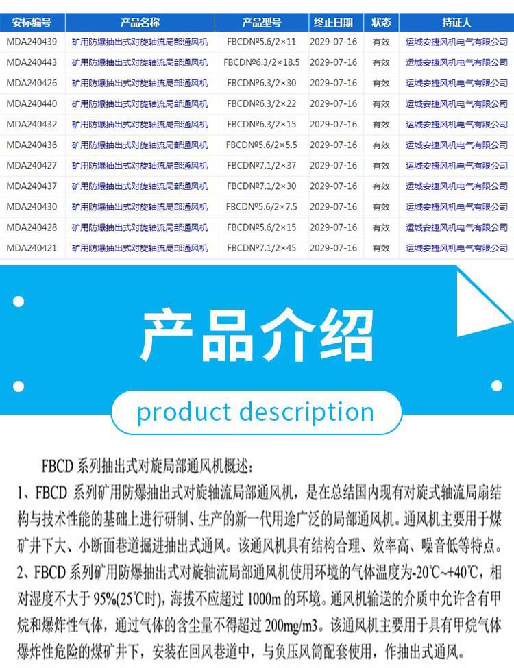 FBCD№5.6/2×7.5抽出式对旋轴流局部通风机 FBCD5.6/2×11防爆风机 类型 | 抽出式对旋风机 | ||