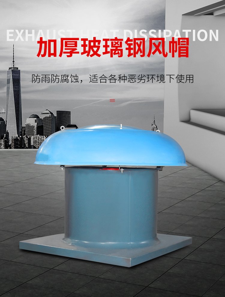 轴流式屋顶风机DW87-3-5 厂房车间民用建筑低噪屋顶排风换气机 0.55kw采用模压轴流叶轮,风机传动方式为电机直联传动,配玻璃钢防腐风帽,风筒底座可选用碳钢、玻璃钢、不锈钢、铝制等材质,具有耐腐蚀、质轻高强,运转平稳,维护简单,噪声低等特点,广泛适用于发电、化工、橡胶、制药、食品加工、冶金等各工矿企业,和高级民用建筑的通风换气。