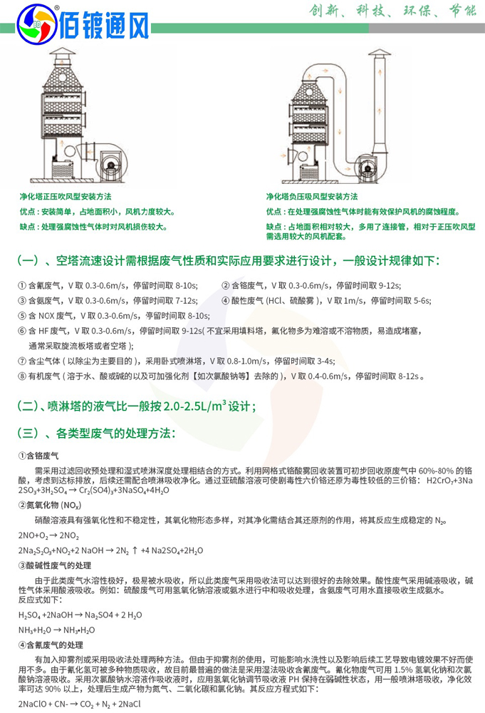 ①含氰废气,V取0.3-0.6m/s,停留时间取8-10s;