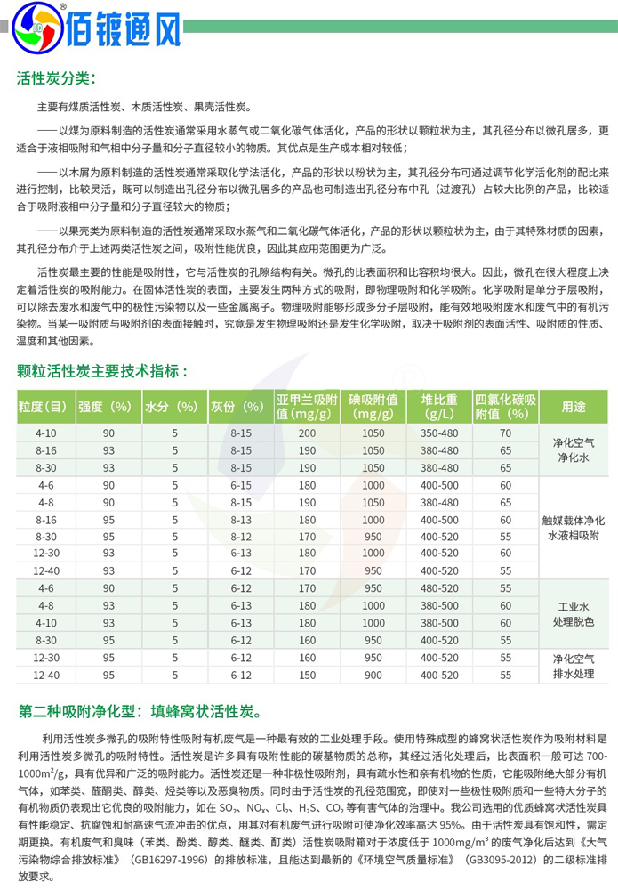 活性炭又称活性炭黑。是黑色粉末状或颗粒状的无定形碳。活性炭主成分除了碳以外还有氧、氢等元素。活性炭在结构上由于微晶碳是不规则排列,在交叉连接之间有细孔,在活化时会产生碳组织缺陷,因此它是一种多孔碳,堆积密度低,比表面积大。活性炭的成品有粉末炭、造粒炭与破碎炭。活性炭是一种主要由含碳材料制成的外观呈黑色,内部孔隙结构发达、比表面积大、吸附能力强的一类微晶质碳素材料。活性炭材料中有大量肉眼看不见的微孔,1克活性炭材料中微孔,将其展开后表面积可高达800-1500平方米,特殊用途的更高。也就是说,在一个米粒大小的活性炭颗粒中,微孔的内表面积可能相当于一个客厅面积的大小。正是这些高度发达,如人体毛细血管般的孔隙结构,使活性炭拥有了优良的吸附性能。去除污染物有:二氧化碳、氧化氮、二硫化碳、四氯化碳、硫化氢、氯、苯、二甲苯、丙酮、乙醇、乙醚、甲醇、乙酸、苯乙烯、光气、汽油、煤油、恶臭物质等。