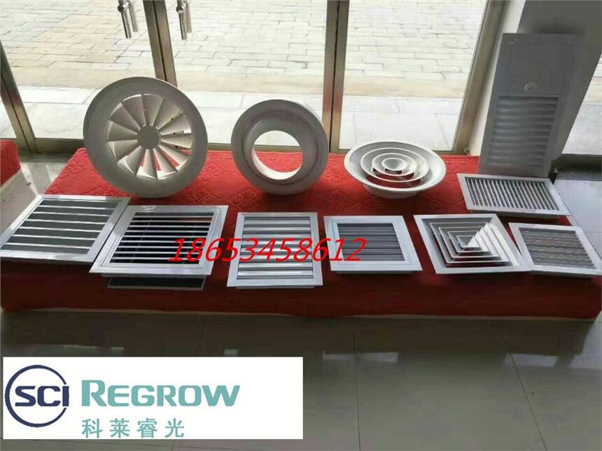 方形散流器(铝合金散流器)优点及适用范围:气流属贴附(平送)型,适用于播音室、医院、剧场、教室、音乐厅、图书馆、游艺厅、剧场休息厅、一般办公室、商店、旅馆及体育馆等。为了使人们在各种环境下避免噪音的干扰以及不适感,除了按性能表确定颈部风速外,还需要考虑安装高度及安装场合。