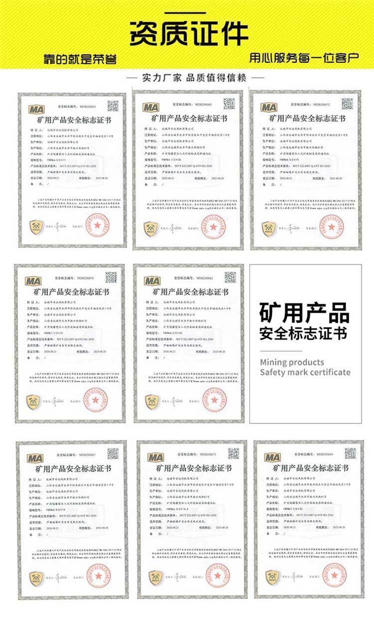 2、每台设备应提供“三证一标志”,即:防爆合格证、产品合格证、生产许可证、煤安标志。