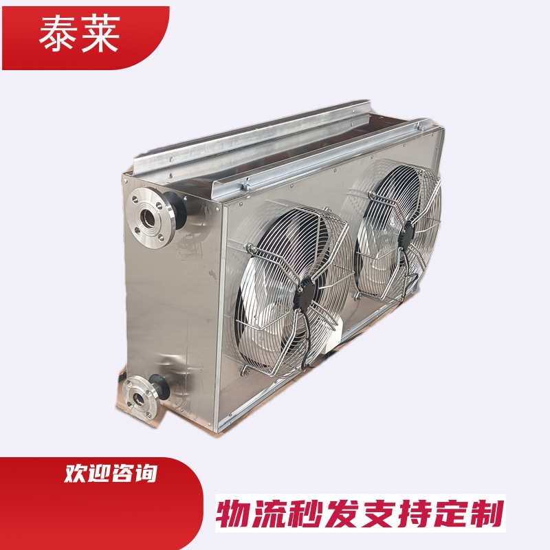 花卉大棚热水暖风机智能遥控GSN-4不锈钢蒸汽暖风机暖风机是由通风机和无缝钢管绕镀锌或铝翅片散热器组合而成的联合机组。主要用于加热空气,厂矿企业、生产车间及其它大型建筑物中的热风采暖。