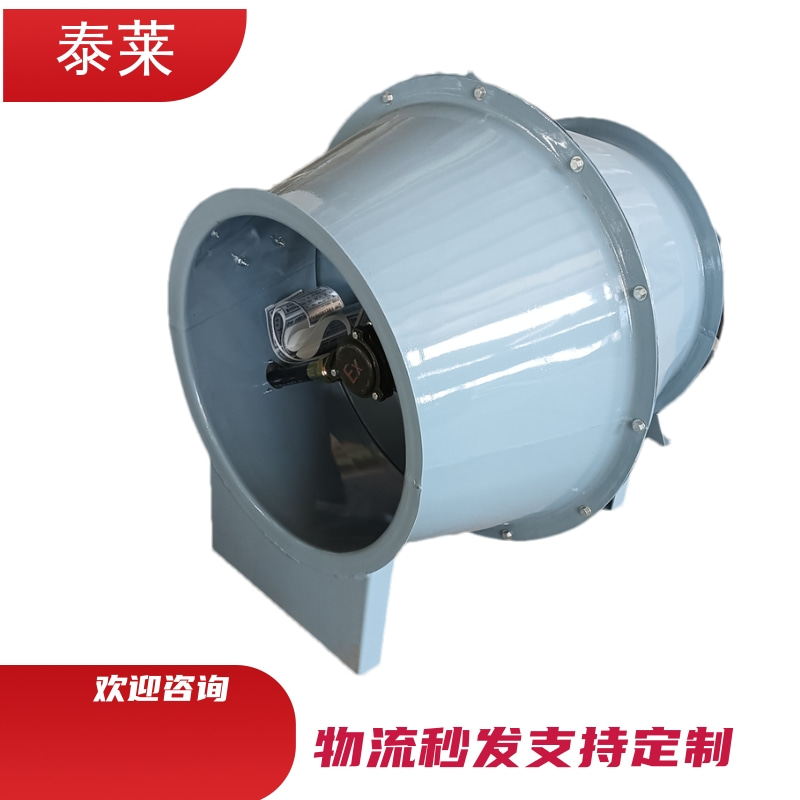 BSWF防爆混流风机事故排风机GXF-7A斜流风机混流式加压送风机是介于轴流风机和离心风机之间的风机,混流风机的叶轮让空气既做离心运动又做轴向运动,壳内空气的运动混合了轴流与离心两种运动形式,所以叫“混流”。