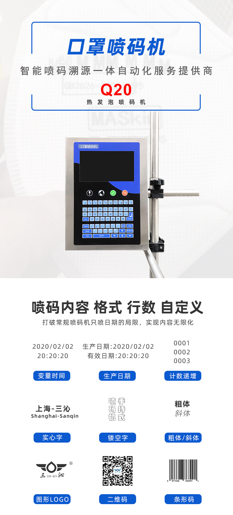 口罩喷码机Q20热发泡喷码设备油墨实时可变数据喷码多头组合喷印