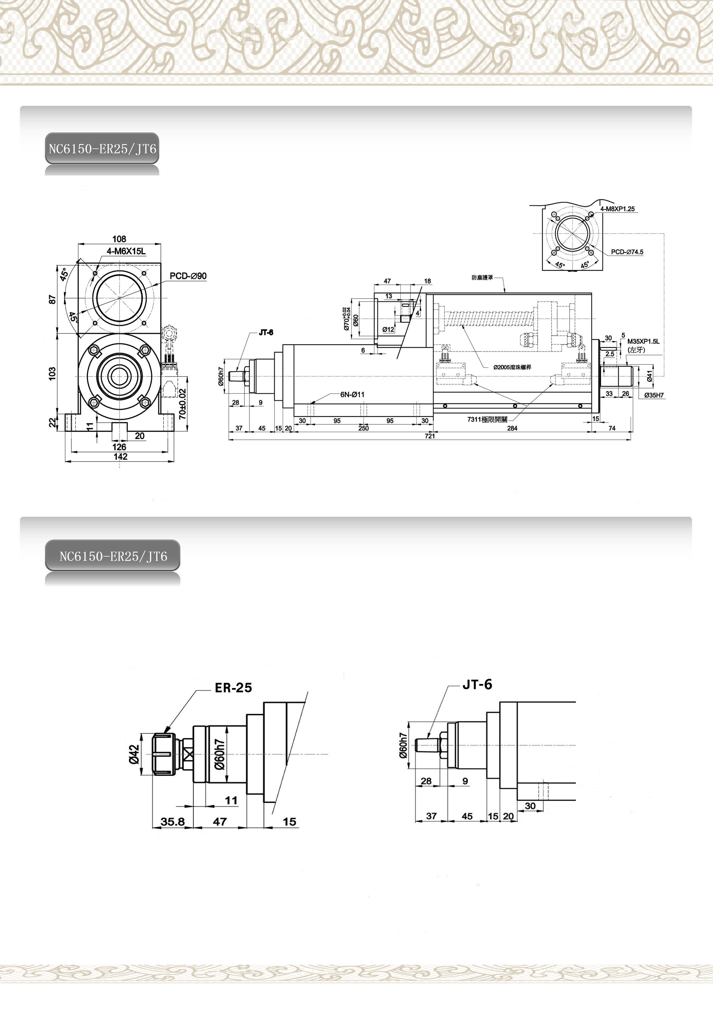 CNC6150(钻孔能力為(S45C) ∮16,攻牙能力為M12,X行程為150mm,转速為RPM3000,鼻端输出方式為ER32/MT2,滚珠丝杆為FSI20-5T4,扭力输出為856Kg)