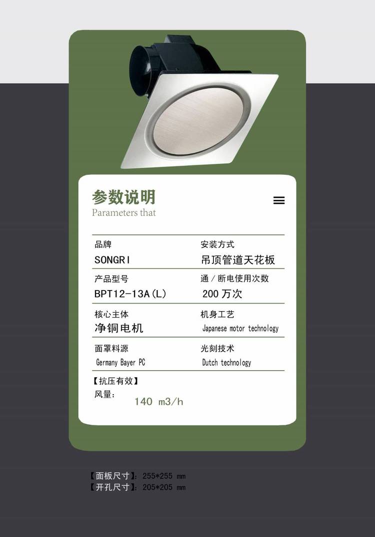 生产“松日”、“SONGRI”换气扇、墙壁换气扇、吸顶排风扇、厨房