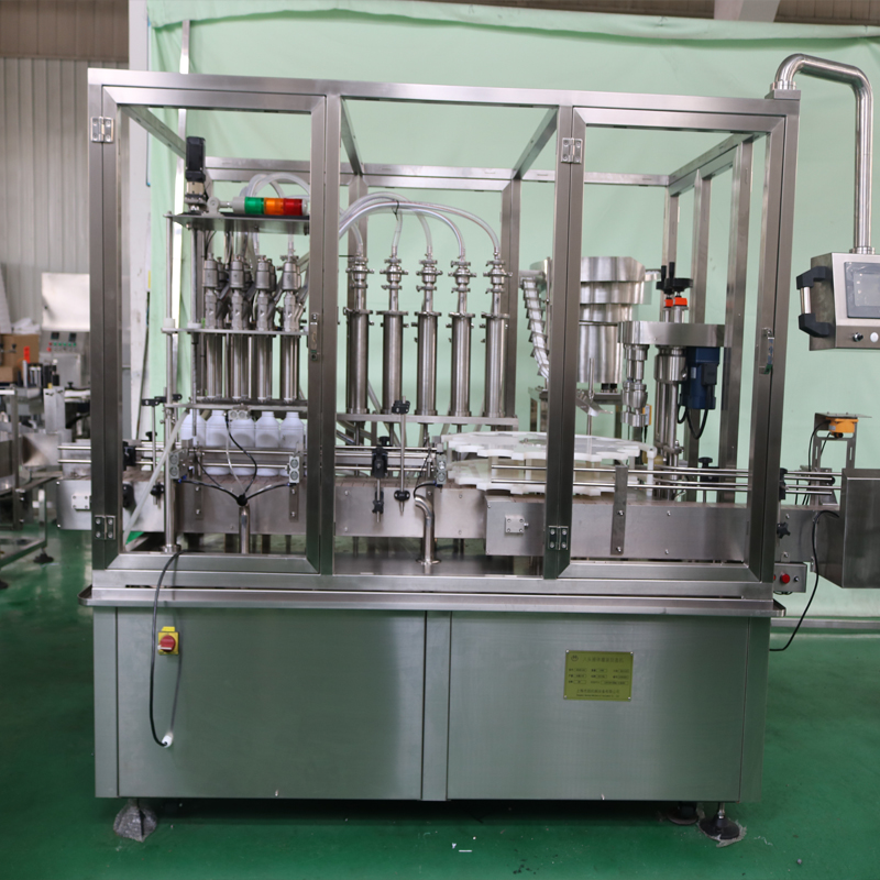本生产线由全自动理瓶机、灌装旋盖机、立式贴标机组成,可完成理瓶、灌装、旋(轧)盖、贴标打码等工序,主要用于喷雾剂溶液的联线生产.广泛应用于制药、食品、化工等行业。符合GMP要求.