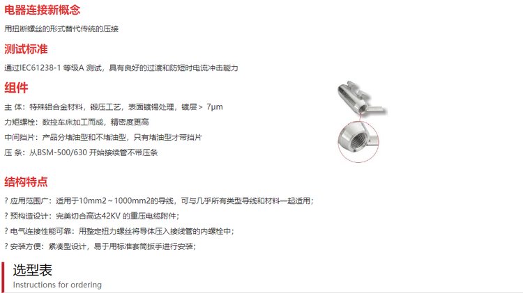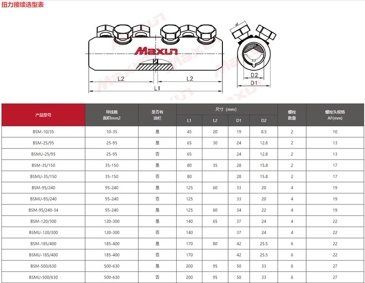 万协-螺栓型扭力接续线管端子BSM-25/95连接器铝合金机械线耳 品牌 | 万协 | ||