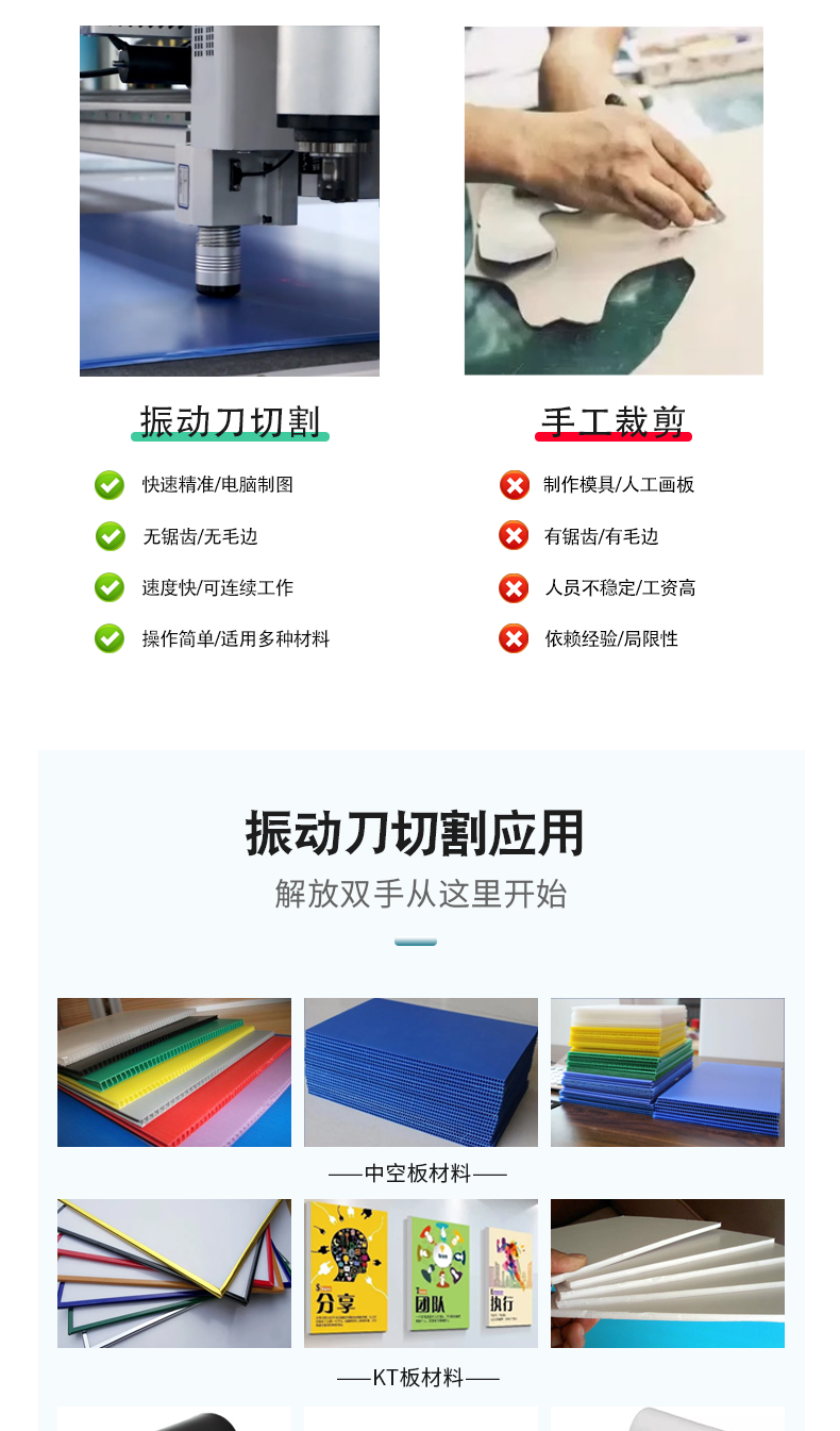 雪弗板kt板广告材料纸盒纸箱打样机振动刀切割机智能识别