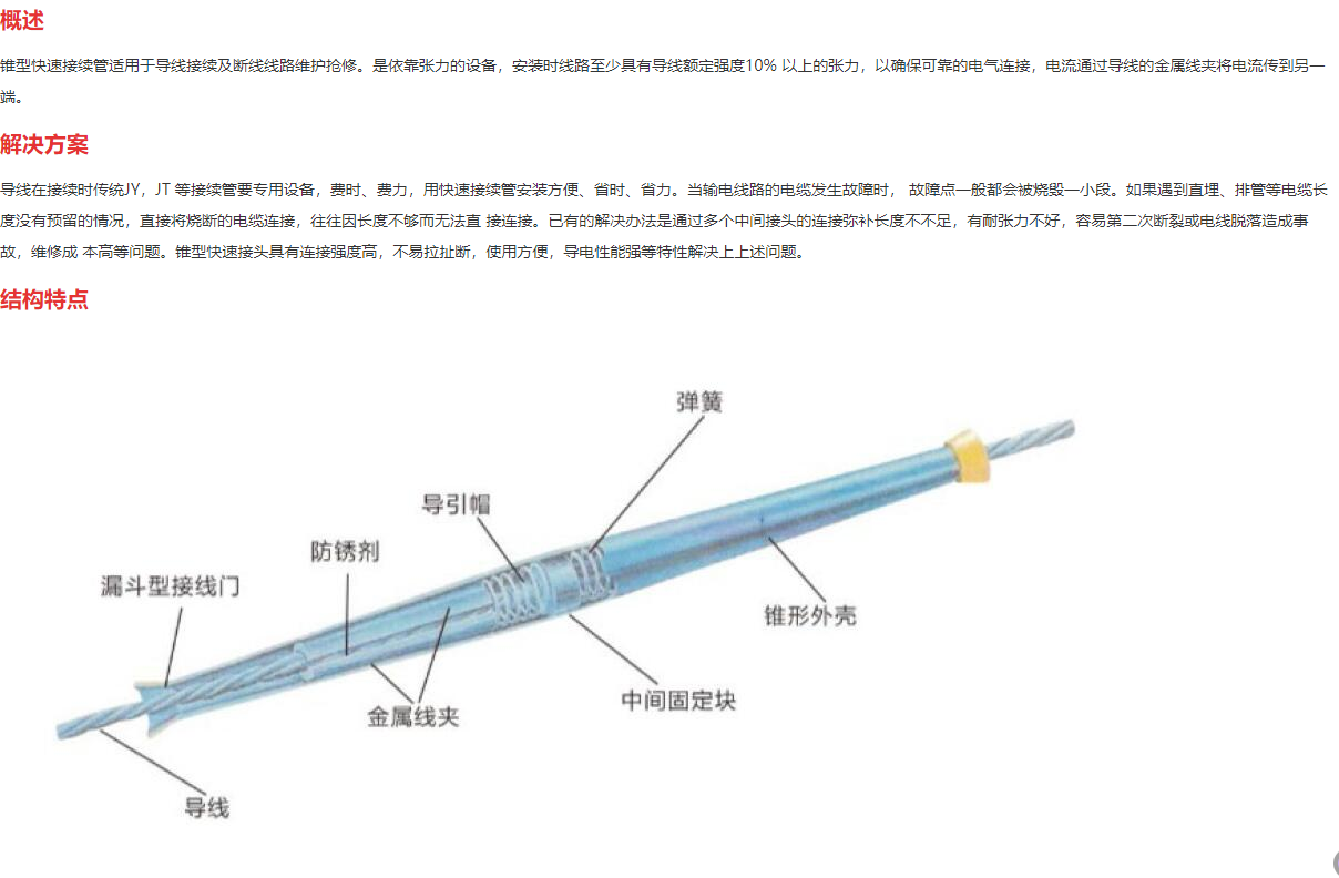 万协-锥形自动快速接续管导线中间断裂抢修专用快速恢复供电