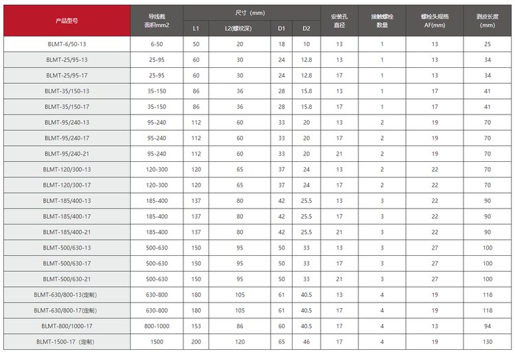 万协合金AUL BLMT-120/300螺栓型扭力端子机械合金线鼻子线耳 品牌 | 万协 | ||
