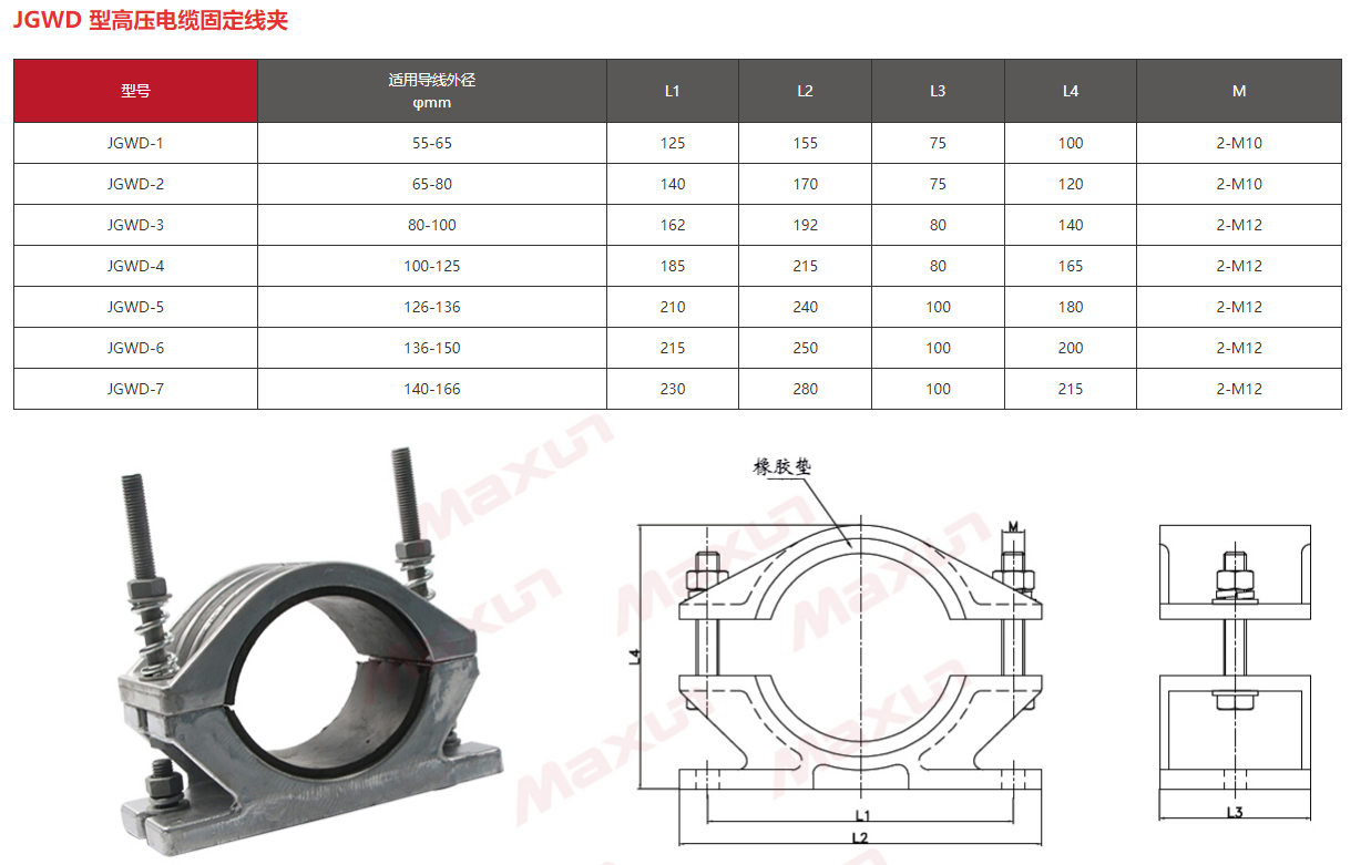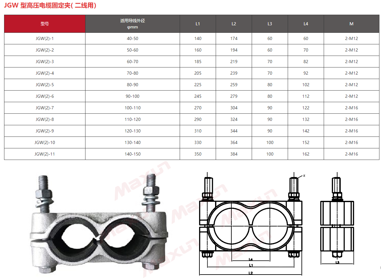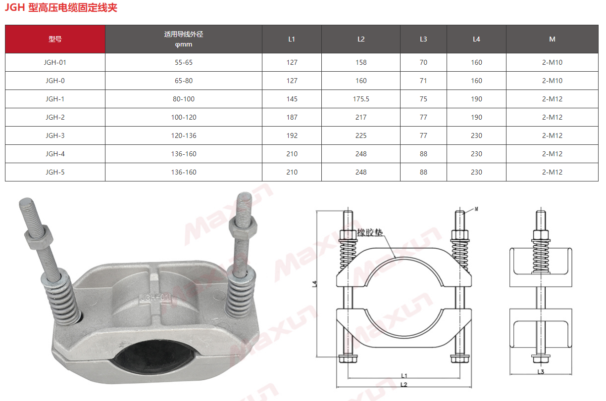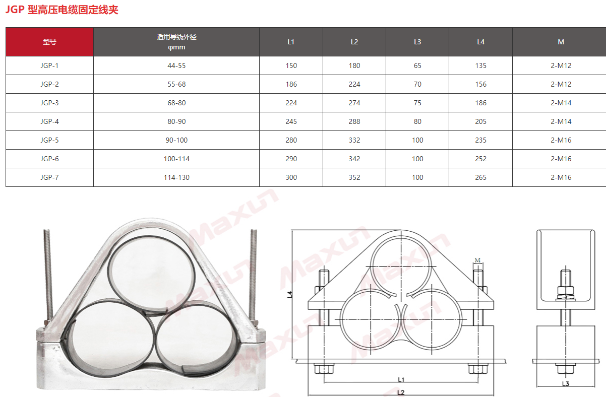 万协电力铝合金高压电缆固定线夹JGH单芯电缆固定夹具