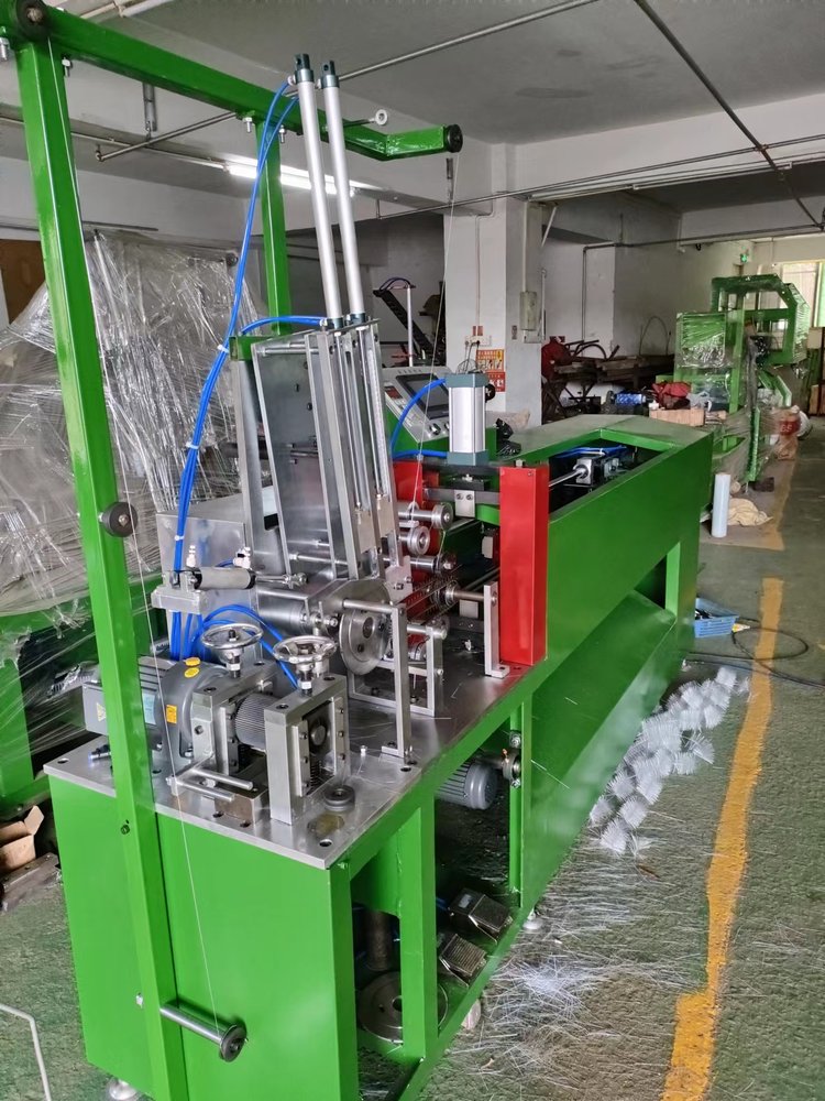 产品用途:适用于把硬质PVC加工成松针圣诞树的松条 品名 规????格 电压 380V50HZ交流 总功率 3KW 汽泵 0.6 - 0.7mpa 每条长度 2.4m PVC材料长度 1"– 16" 铁丝规格 18# - 22# 产量 500条每小时 本机可生产松针圣诞树,毛刷制品;采用先进的工程技术,性能稳定,操作方便,寿命长。