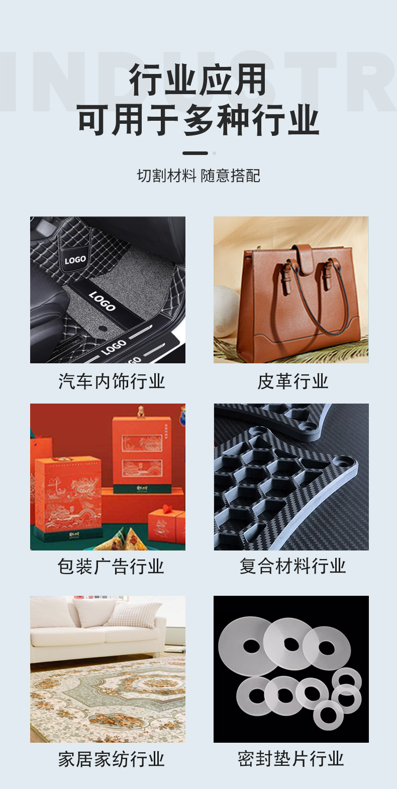 用途范围 | 柔性材料切割 、汽车脚垫材料、皮革、坐垫、座套 | ||