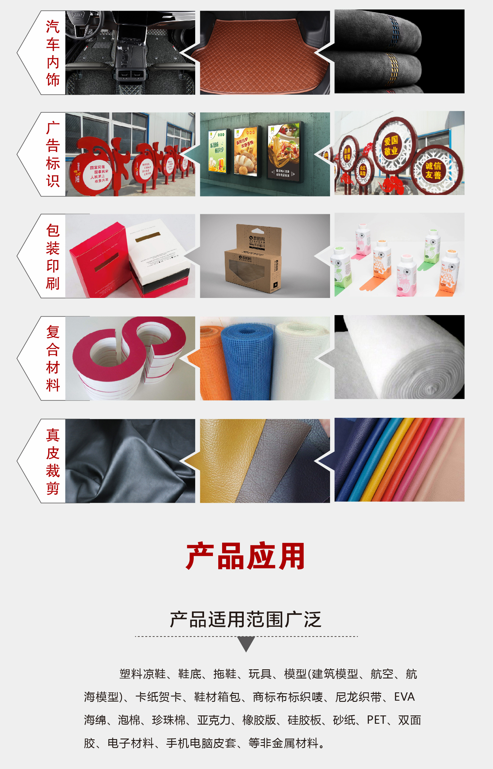 用途范围柔性材料切割