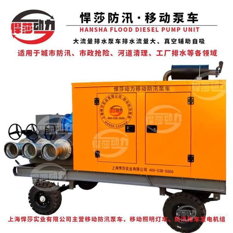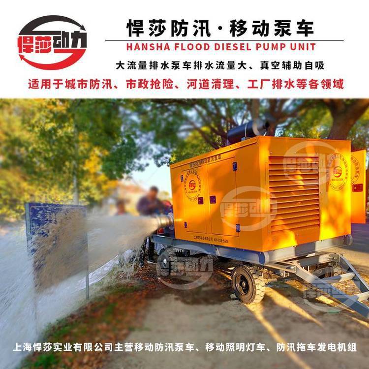 悍莎移动自吸式移动泵车主要用于市政排污及防涝工程、农业灌溉,工业排水、排污等 领域。根据类型分可分为固定式、二轮拖车式等。
