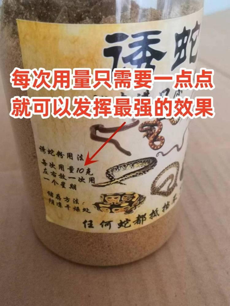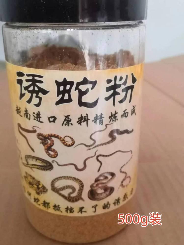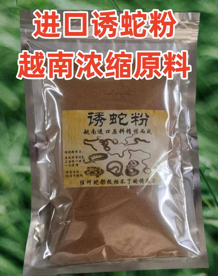 此款诱蛇粉采用越南进口原料制作而成,气味浓郁,味飘千米,浓缩精粹的诱蛇粉气味持久,放一次用一个星期,蛇只要闻到诱蛇粉的味道就会迅速赶来,诱捕范围可达千米范围,比用活饵要强太多了。诱蛇粉可以配合蛇笼一起用,也可以挂在蛇网上。诱蛇粉规格:有500克装和1000克装,500克装的100一瓶,1000克装的200一包用法用量:用饵料包包5-10克左右诱蛇粉挂在蛇笼里或者蛇网上即可。储存方法:密封好阴凉干燥处保存