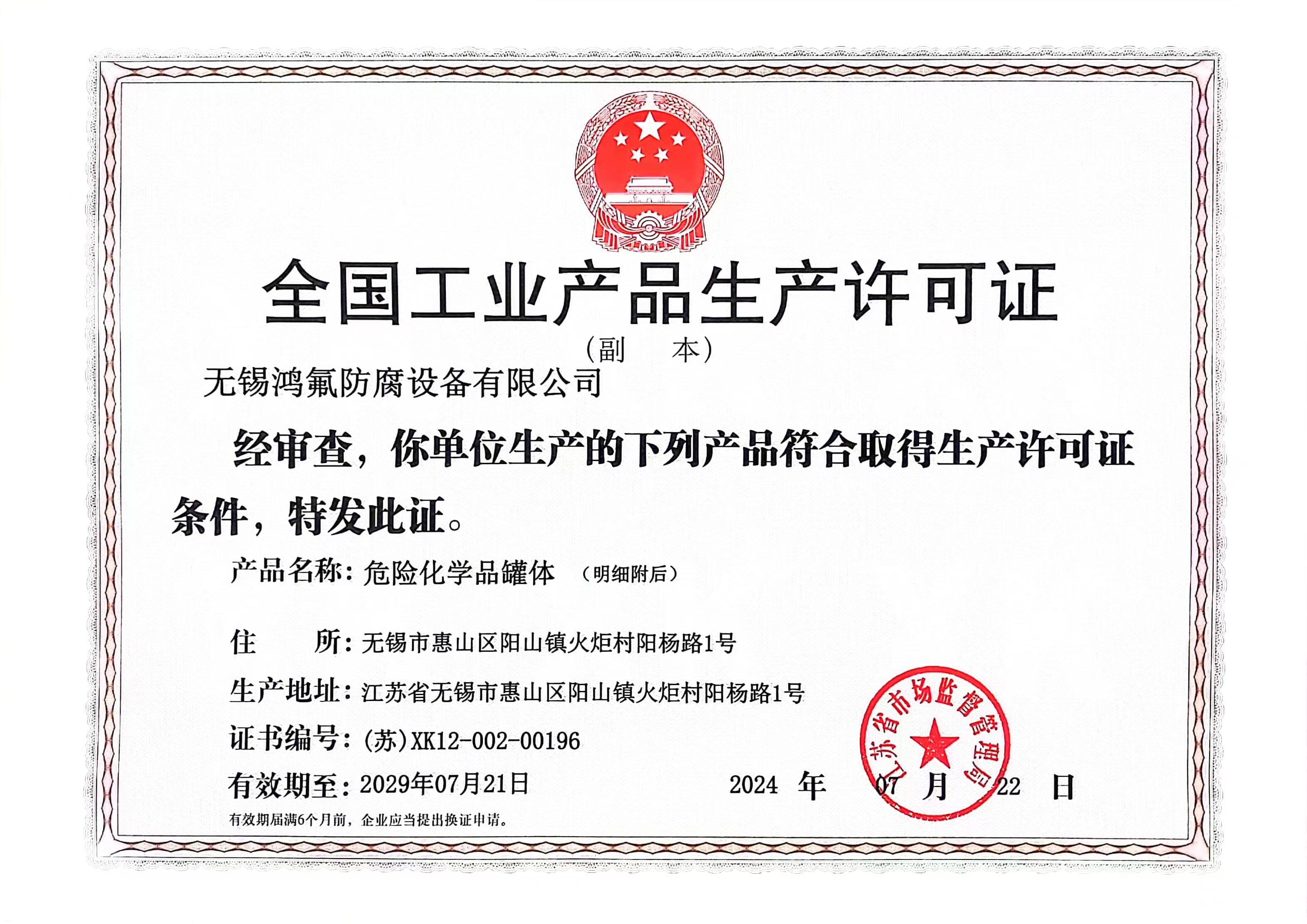 特种设备制造许可证号 | XK12-002-00196 | ||