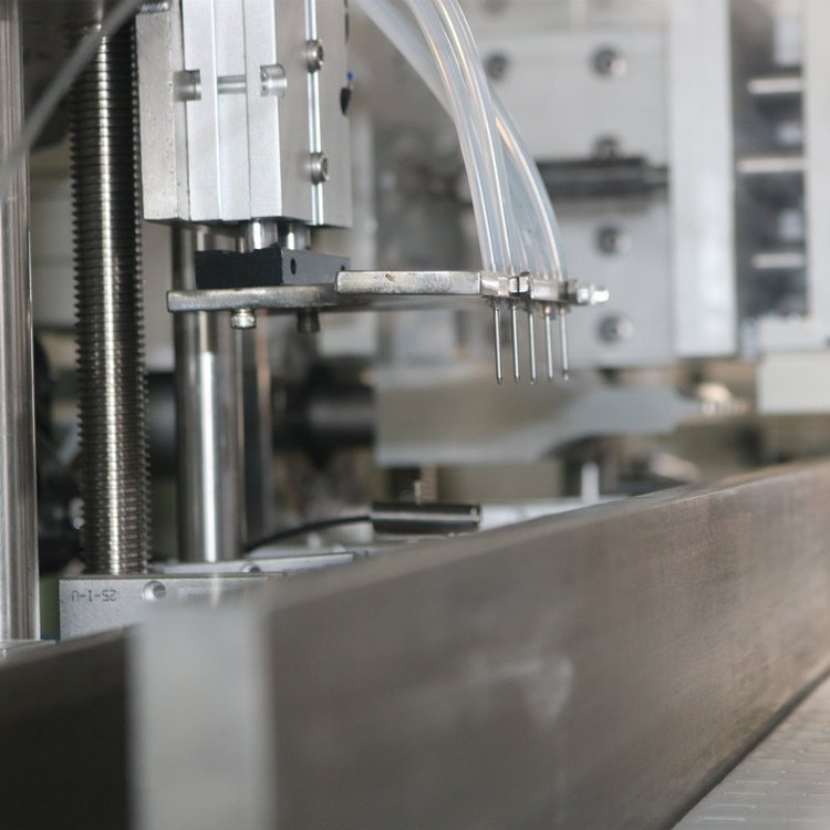 本机是液体生产线中的灌装旋(轧)盖主机,主要用于玻璃瓶或者塑料瓶的灌装、上盖、旋盖等。采用直线式或者圆盘定位式灌装,电磁振动送盖,全自动旋(轧)盖,具有无瓶不灌功能。该机灌装和旋(轧)盖合二为一,灌装量准确,设计合理,结构紧凑,符合GMP标准。