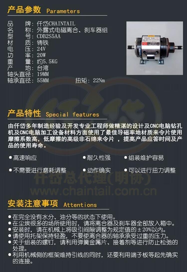 折叠机专用仟岱牌电磁离合刹车器CDB2S5AA/CDB2S5AB,扭力20NM,电压24V,功率20W,台湾仟岱有限公司生产,以上资讯由广州仟岱有限公司提供,欢迎来电咨询。