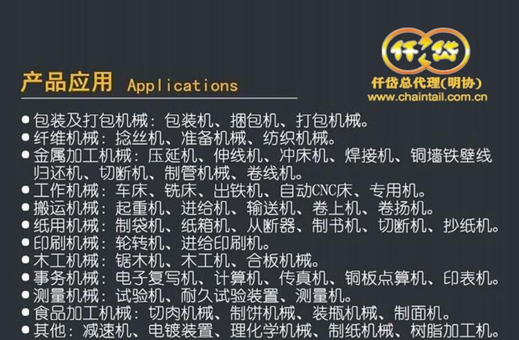 用途:食品机械、造纸机械、印刷机械、塑料机械、橡胶机械、纺织机械、印染机械、电线电缆机械、冶金机械离合制动