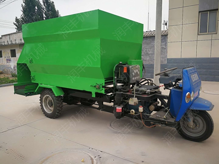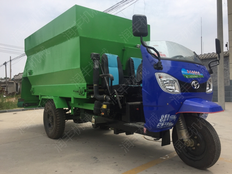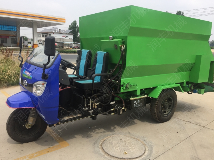 ? 产品特点:1.该机器采用电动三轮车运送,低能耗,通过性高。2.降低劳动强度,减少饲喂成本。3.可双侧撒料,饲喂更快捷。4.物料抛撒迅速,档位调节撒料速度。5.故障低维修方便。6.敞篷驾驶室内控制所有驱动装置。7.分批投放饲草,针对牛场及羊场分群饲喂,适于各种规模牧场。8.机动性强、通过性强、转弯半径小,更加灵活方便。9.小型撒料车更合适用于固定式搅拌站,油耗低,效率高,速度快。
