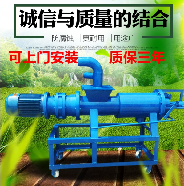 螺旋挤压式猪粪处理机,可广泛用于畜禽粪便(猪粪、鸡粪、鸭粪、兔粪、牛粪等等动物粪便)的脱水处理,该猪粪脱水机主要由:滤网、螺旋绞龙、螺旋叶片均采用304不锈钢跟合金经过特殊的工艺制造而成,具有很好的耐腐耐磨等等特点,是其他同类产品使用寿命2-3倍。