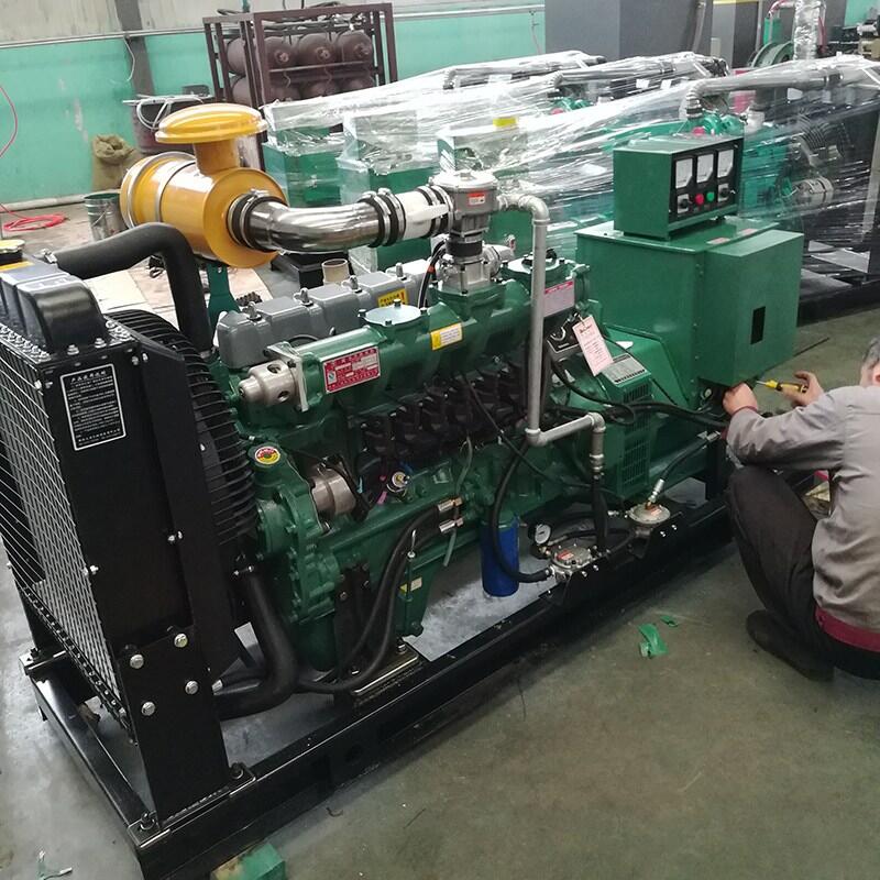 ????沼气发电机组是以生物质发酵产生的沼气经过净化处理后,在燃气内燃机气缸中压缩点燃做功进行发电的设备。沼气是将人畜粪便、庄稼秸秆等有机物在隔绝空气(还原条件),并必适宜的温度、湿度下,经过微生物的发酵作用产生的一种可燃烧气体。沼气的主要成分是甲烷,甲烷是一种理想的气体燃料,它无色无味,与适量空气混合后即对燃烧。每立方米纯甲烷的发热最为34000焦耳,每立方米沼气的发热量约为20800-23600焦耳。即1立方米沼气完全燃烧后,能产生相当于0.7千克无烟煤提供的热量。将厌氧池密闭,收集沼气,然后配一台沼气发电机就可以了利用这种可燃气体发电,就是沼气发电。