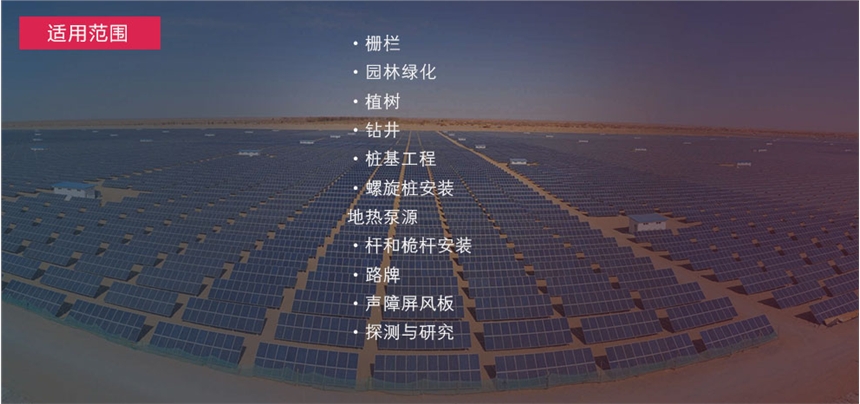栅栏引孔,园林绿化挖坑打孔 ,植树挖坑 ,引孔钻井,桩基工程引孔,螺旋桩安装 ,地热泵源打孔,引孔安装杆和桅杆,钻孔安装路牌杆,声障屏风板钻孔,探测与研究的勘探引孔,水泥电杆挖坑,电线杆挖坑,钻洞打坑,种树挖坑,水泥灌浆打孔,灌注桩引孔,水文地质钻孔,桥梁引孔,光伏引孔