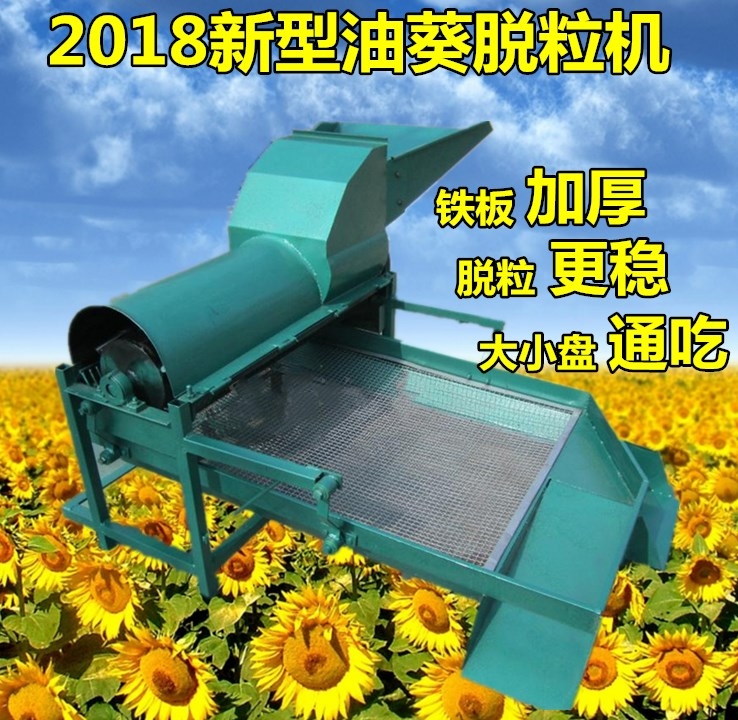 葵花脱粒机配合动力5.5KW以上电动机,柴油机,拖拉机,可与小四轮后尾轮连接,三轮车,等等。本品使用农机,用于葵花脱粒,改变了多年来手工作业的状况方便快捷。结构,使用方便,脱净率高,不裹粒,分离彻底,作业方便,不损伤籽粒的光亮度,生产效率高,适合长时间作业,每小时可脱粒800-1000千克。