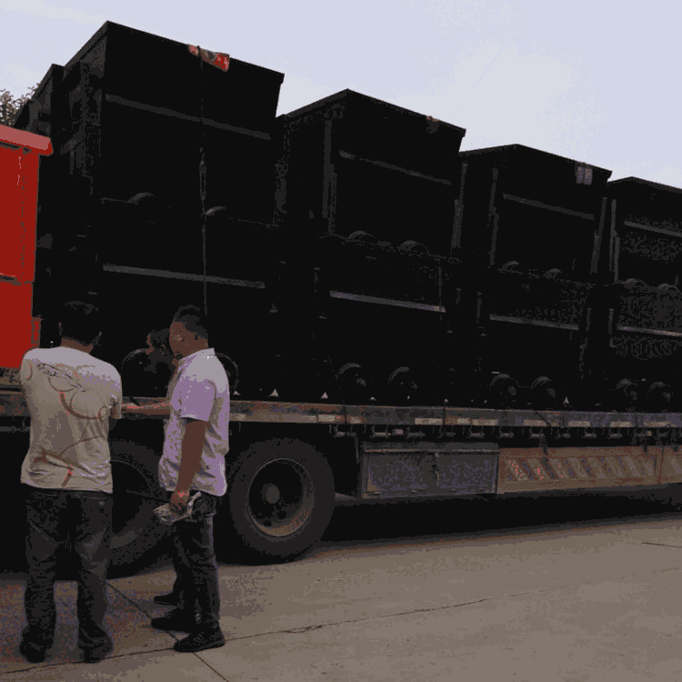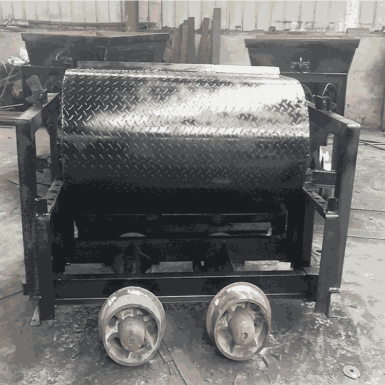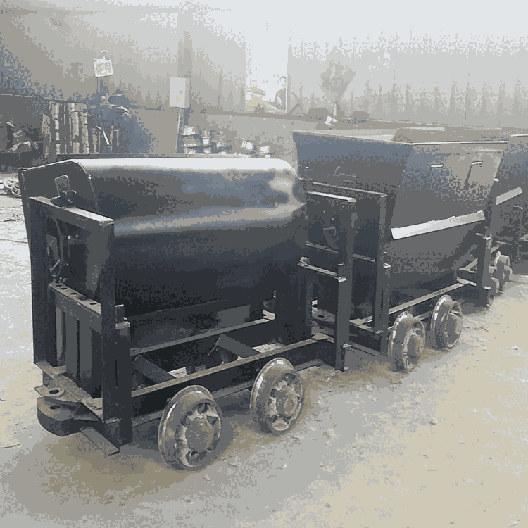 翻斗式矿车车箱断面为V形或U形,支承在车架的翻转轨上,车箱在翻转轨上翻转卸载。翻斗式矿车用在矿山或建筑工地上,用来运输碎的块状物料。如:矿石、煤炭、石头等。由车箱、车架、缓冲碰头、轮轴等组成。结构简单,坚固耐用、使用方便、只需人力打开止动板就能很容易地卸下物料。轮轴采用了滚柱轴承,有效地减少了运行阻力,用人力即可推动。