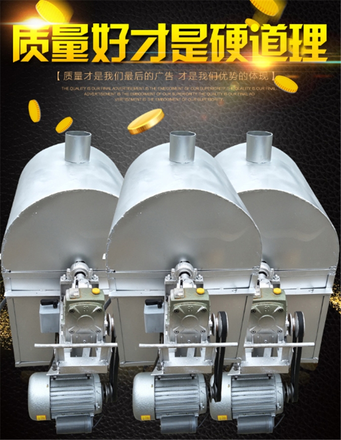 翻炒机适用范围:中小投资创业者加盟店,水果超市,菜场,集市,车站,流动人口密集的场所开店经营现炒现卖,栗子卖店,炒货店。 翻炒机用途:适合所有炒货、保健品原料加工,营养办好原料加工,中药店材原料加工,调味品与香料加工,炒咖啡豆,炒栗子,炒花生,炒瓜子,炒核桃,炒芝麻,炒豆,炒米,炒榛子,炒松子,炒开心果等各种干果类食品。翻炒机采用卧式滚筒,360度搅拌滚动,自动搅拌翻炒,加热与搅拌均匀,相对密封,焖炒效果特别好,特作炒货出入锅非常便捷,漏斗进货,省时省力,炒栗机具有自动出锅功能,操作简单,快捷,易懂等诸多优点,使用该 配合我们赠送的特制配方和技术炒制的食品色泽与口味更佳,远距离香气年鼻,多用途的通用炒栗机,是目前炒货机市场上的理想炒货机设备,为了适应各种不同的场所使用,市场子上开发了很多种机型供选择。 翻炒机在过程中可以使炒货食品上下、左右、前后、全方位立体翻炒,不会出现粘小型炒栗子机的现象,炒制出的食品色泽金红亮丽,香气扑鼻。炒货出入锅十分方便,只需按动邢台炒货机械的正反转开关,电机既带动滚筒反转,炒货和小石子会一同出锅,自动分离,操作迅速快捷,省事不费力,糖炒栗子机价格不贵且操作起来既干净又卫
