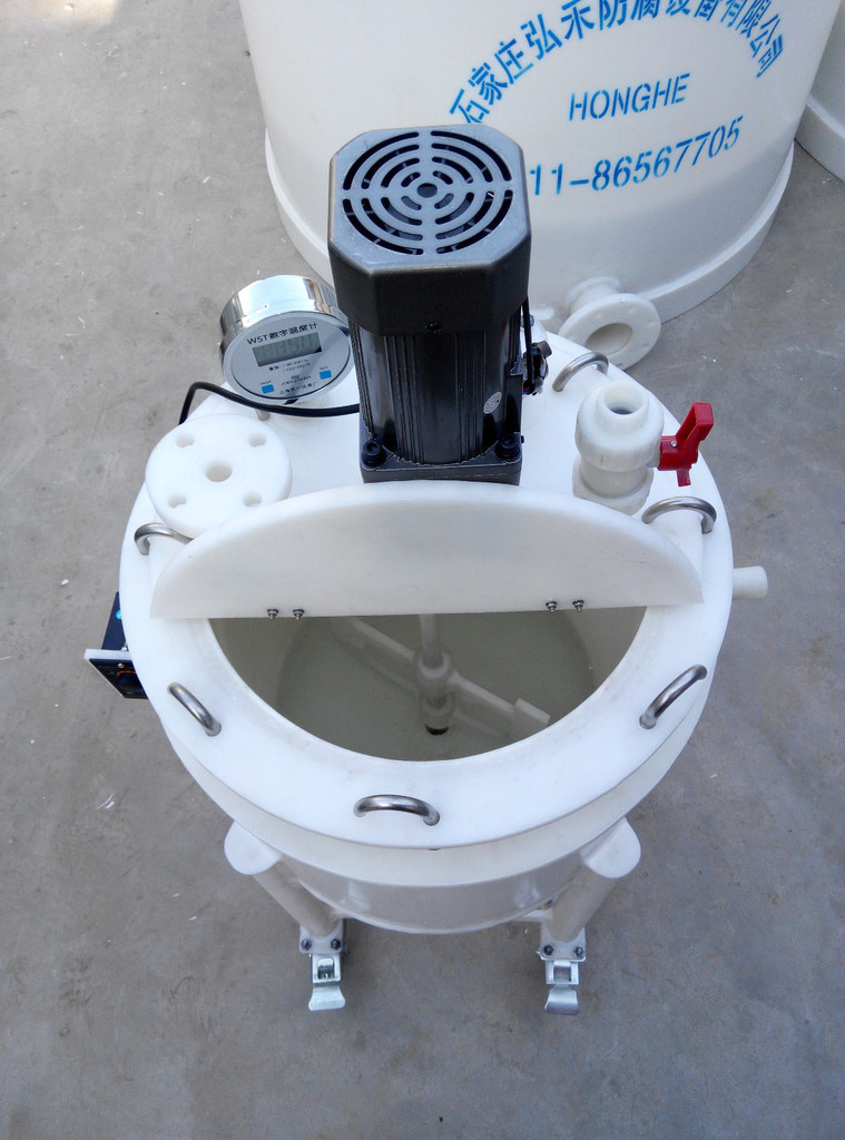 4、耐腐蚀好,各项耐腐蚀指标可与聚四氟乙烯媲美;适用于绝大多数的酸、碱、盐等化学介质,是染料、医药、化工等行业偶合、稀释工序的理想反应釜。