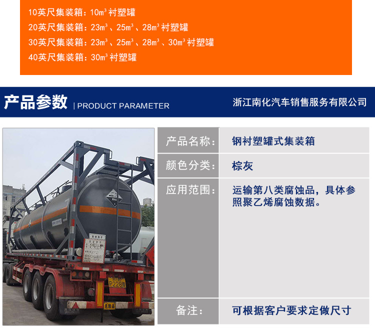 浙江南化 钢衬塑罐式集装箱 运输槽罐 槽车 箱罐