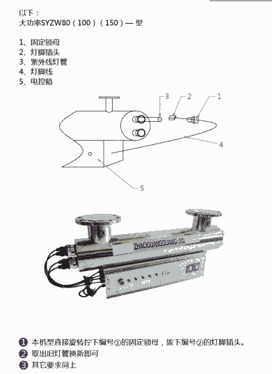 用户可选择从一支灯管到多只灯管的配置组合,详见下表规格一览,处理水量据灯管数量和单只灯管功率决定。