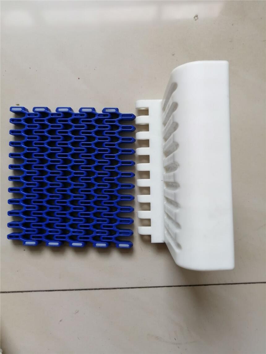 具有网面平整、强硬度高、抗腐蚀性强、抗拉强度大、透气性能好、不易变形、经久耐用等特殊功能。   采用模具注塑成型然后根据客户规格的需要来进行拼接而成(由散件拼接成所需宽度),是一种新型的高科技自动化输送线输送带产品,此类新型的模块输送带出现,解决了以为皮带的跑偏问题和更换难清洗不容易的缺点。
