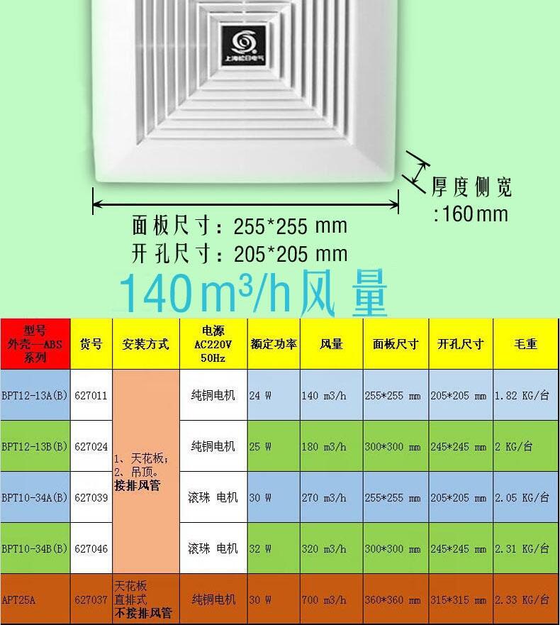 上海松日8寸换气扇格栅式排风扇 吊顶排气扇通风机抽油烟机