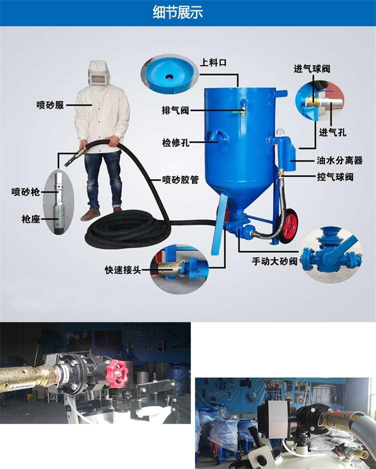 适用于大型工件普通喷砂加工。完成清理锻铸毛坯件、焊接件、热处理件、冲压件及机件加工的粗糙表面、氧化皮、残盐和毛刺等工作,
