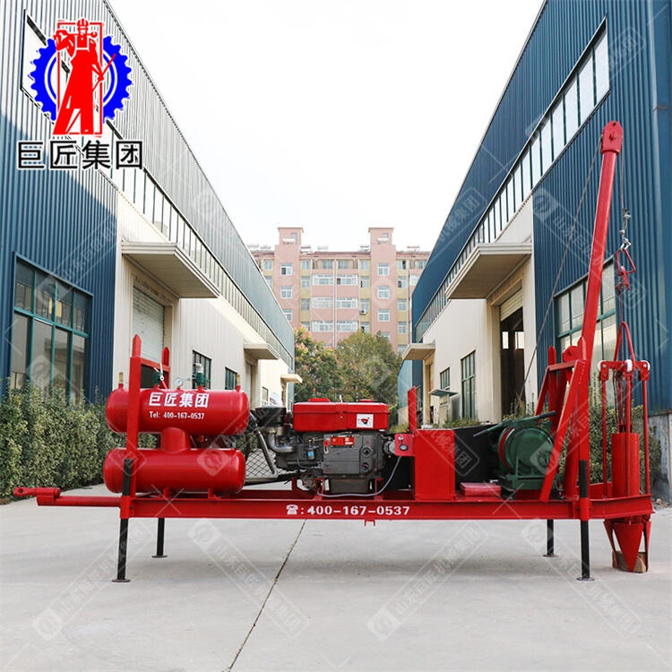 洗井机是山东巨匠机械集团为清理井内污垢,打开水路,疏通渗水孔研发的一款强力洗井设备。该洗井机采用气压原理,洗井时井内水位需在10米左右,通过下入井内的风管向井内压入压缩气体,造成井内水面上下的压力差,让水在井内上下窜动,猛烈冲击井底、井壁,破坏井壁泥皮,污水通过水管排至地面,从而达到洗井的目的。该洗井机清洗速度快,效果好,并且具有结构简单、操作方便、工作可靠等特点。该系列洗井机洗井深度可达100-300米,解决了传统的洗井机作业效率低下的问题,降低了洗井成本。现已广泛应用在农田灌溉井、新老深水井的清洗,并成为全国水利局、国家抗旱服务队、工程招标采购的重要洗井产品。如需捞取井内水泵或石块等,可以选配抓锥。
