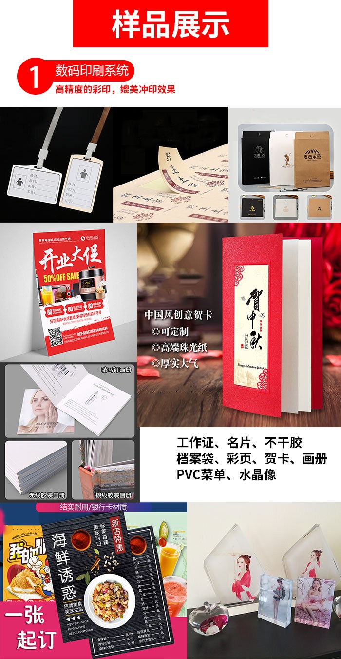 数码印刷精度可达到5740dpi,印刷效果媲美照片冲印,印完即干,还可以防水防子外线 。