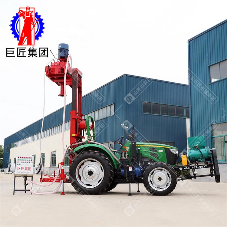 JZ-C系列拖拉机载正循环打井机以拖拉机为载体,参照液压叉车配置液压伸缩滑架,大大减小了井机体积,便于在窄小的空间内作业和机动打井。JZ-C系列拖拉机载正循环打井机自身配备柴油发电机,柴电两用切换方便。电机带动变速箱,变速箱采用高低档形式,轻松应对不同地层,大大提升了打井效率。