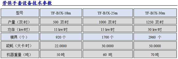 劳保手套生产线采用连续生产方式和直浸方式,成膜均匀,色泽艳丽,生产线长度有 25 米,30 米、60 米等多种规格,自动化程度高、