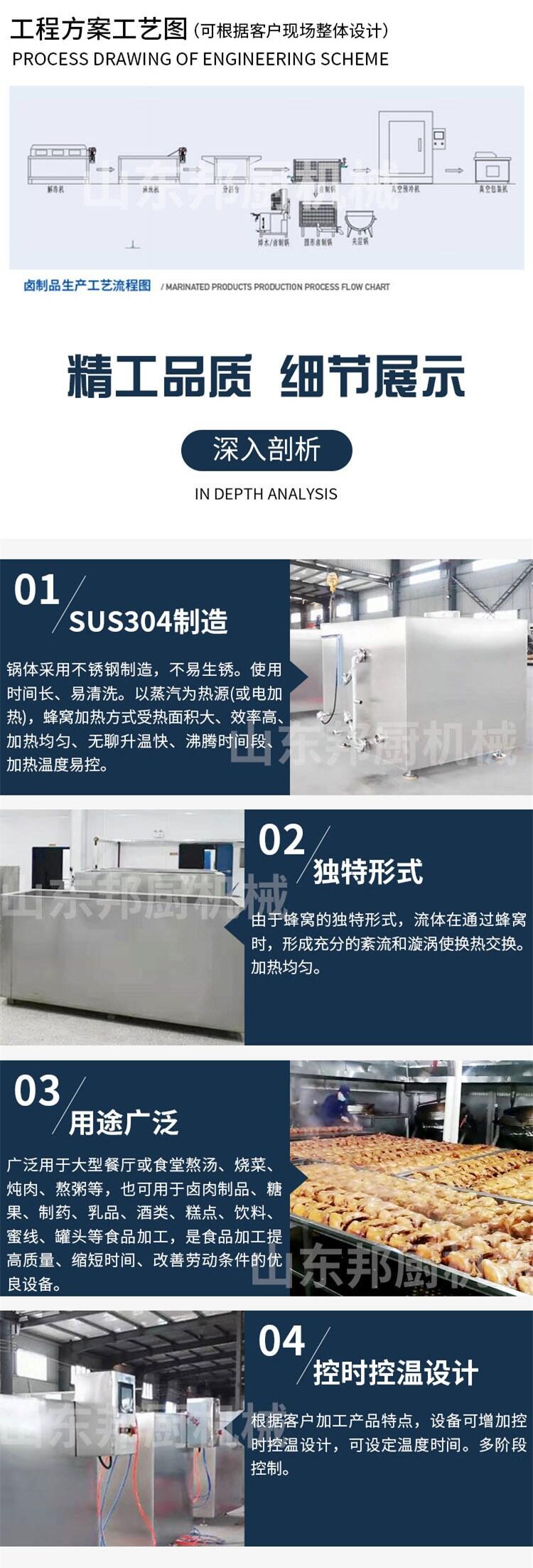 邦厨机械供应大型商用牛肉卤煮线 豆干鹌鹑蛋卤煮锅