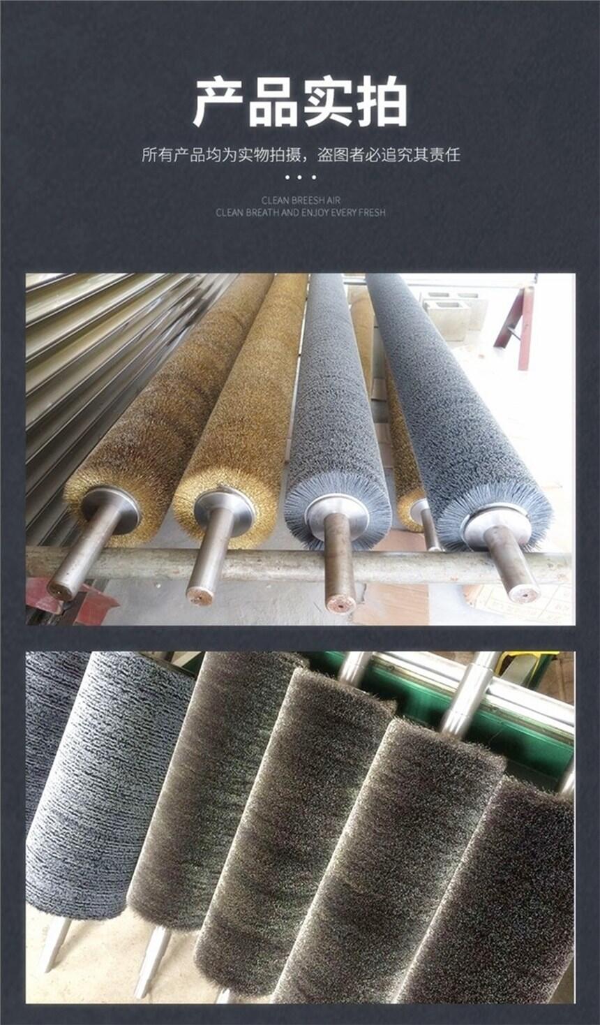 钢丝刷辊通过调节刷辊的压力和压下量来控制它。压下量主要是指刷辊受压后钢带表面上的刚毛变形量。如果压下量太小,则尽管硬毛的寿寿命长,但是刷辊和钢带的作用很小,并且清洁效果不好。如果压下量太大,则硬毛的弯曲变形量大,不仅清洁效果不好,而且刷辊的寿命也大大减少。另外,在清洁的同时,用带有刷毛的刷辊连续地刷洗钢带的表面,以机械地施加油污,以去除钢带表面上的铁粉或污泥状污染物与油的混合。特别地,刷毛对钢带也具有一定的磨蚀作用,其可以部分除去钢带表面上的锈和固化的防锈油。在刷洗过程中,高压清洁溶液会喷在钢带和刷辊之间。除油除脂外,对刷毛也有一定的润滑作用。如果没有清洁液,则刷毛会在钢带表面上产生干摩擦,温度升高,熔化并损坏。为了增加刷毛和钢带之间的相对运动,通常使刷辊抵靠钢带运动。这样,注意喷水的方向和角度。必须从与刷辊旋转一致的方向喷洒清洁液,并且喷水角度必须在刷辊和钢带的切线略微偏向刷辊的位置,在钢毛的切向和径向离心力的作用下,它将被抛到钢带上并与钢毛一起工作。钢丝刷辊是用于清洁镀铬的网纹辊和凹版印刷辊的常用清洁工具,使用清洁剂效果会更好。普通钢丝刷容易生锈且不耐用,并且304不锈钢钢丝制成的木柄钢丝刷的质量差异太大,因此选择优质的钢丝刷辊很重要!