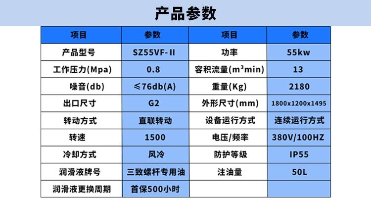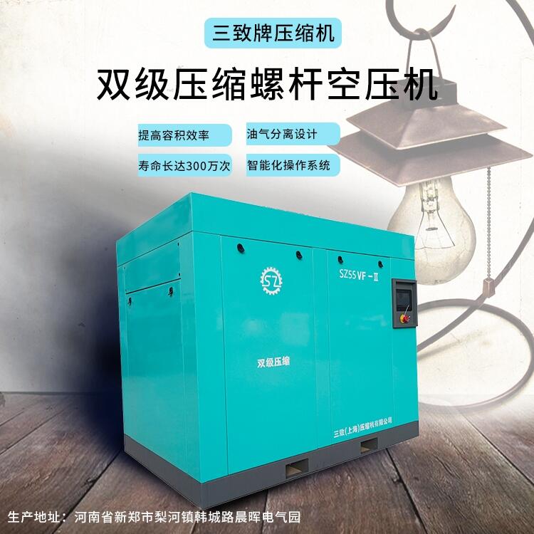 河南省方城县三致双级压缩螺杆空压机SZ55VF-Ⅱ陶瓷行业用机