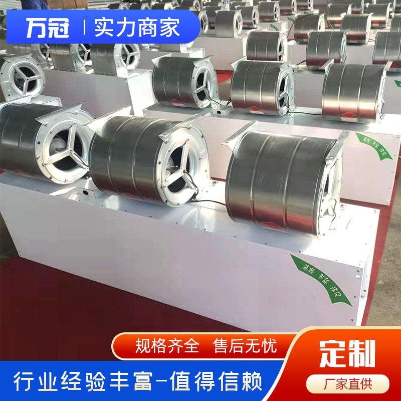 4、机组安装好后,应首先进行试运行,检查风机电机接线是否正确和可靠,以免发生短路烧损电机,并注意叶轮旋转方向是否正确。
